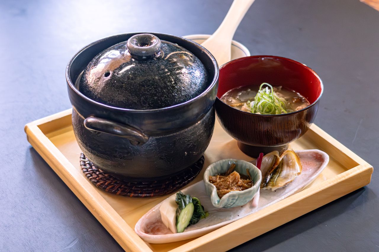 土鍋で炊いた銀しゃりは、この時期最高のご馳走。板前手作りのお供で。