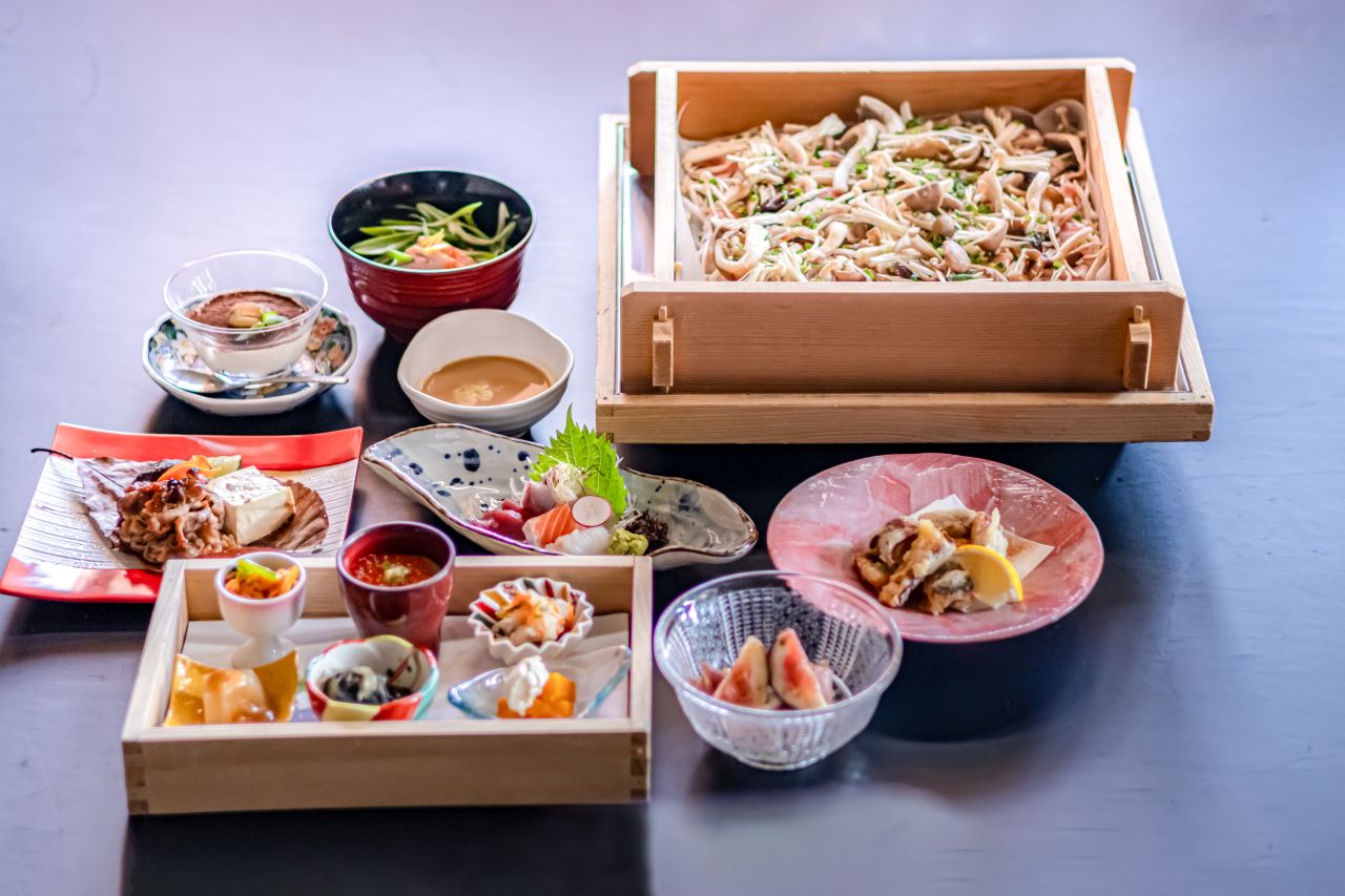 台物 | 能登豚ときのこの蒸籠蒸し | 能登豚ときのこの蒸籠蒸し | 能登牛の月見陶板焼き |