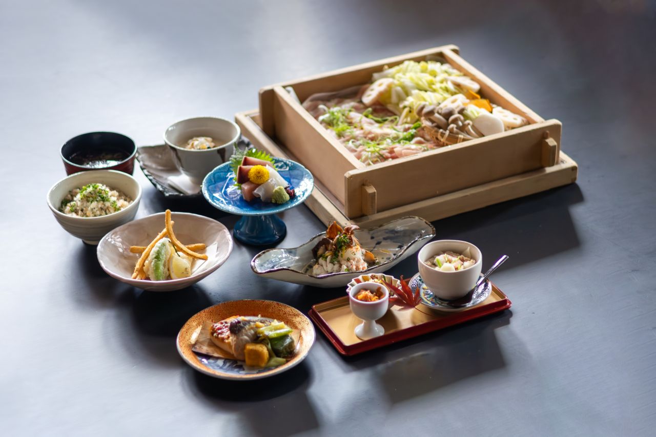 | 台物 | 能登豚と季節野菜の蒸籠蒸し南瓜、シメジ、蕪、白菜、のやし | 能登豚と季節野菜の蒸籠蒸し南瓜、シメジ、蕪、白菜、のやし | 能登牛陶板焼き |