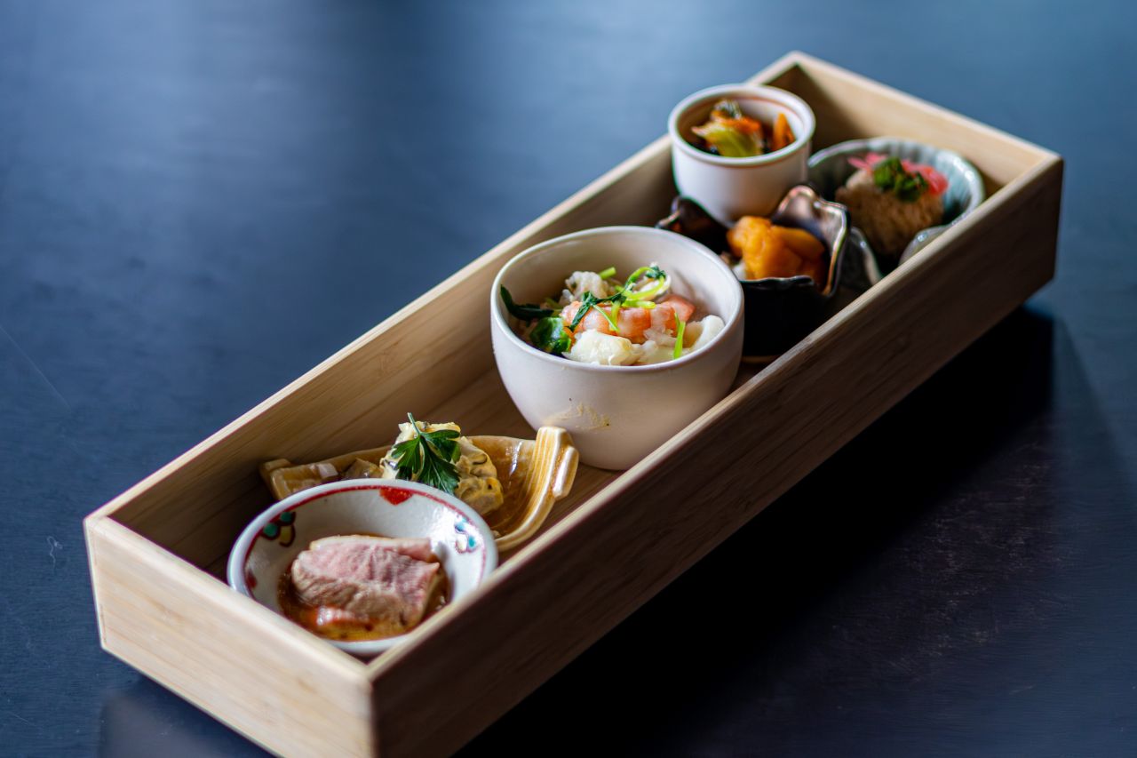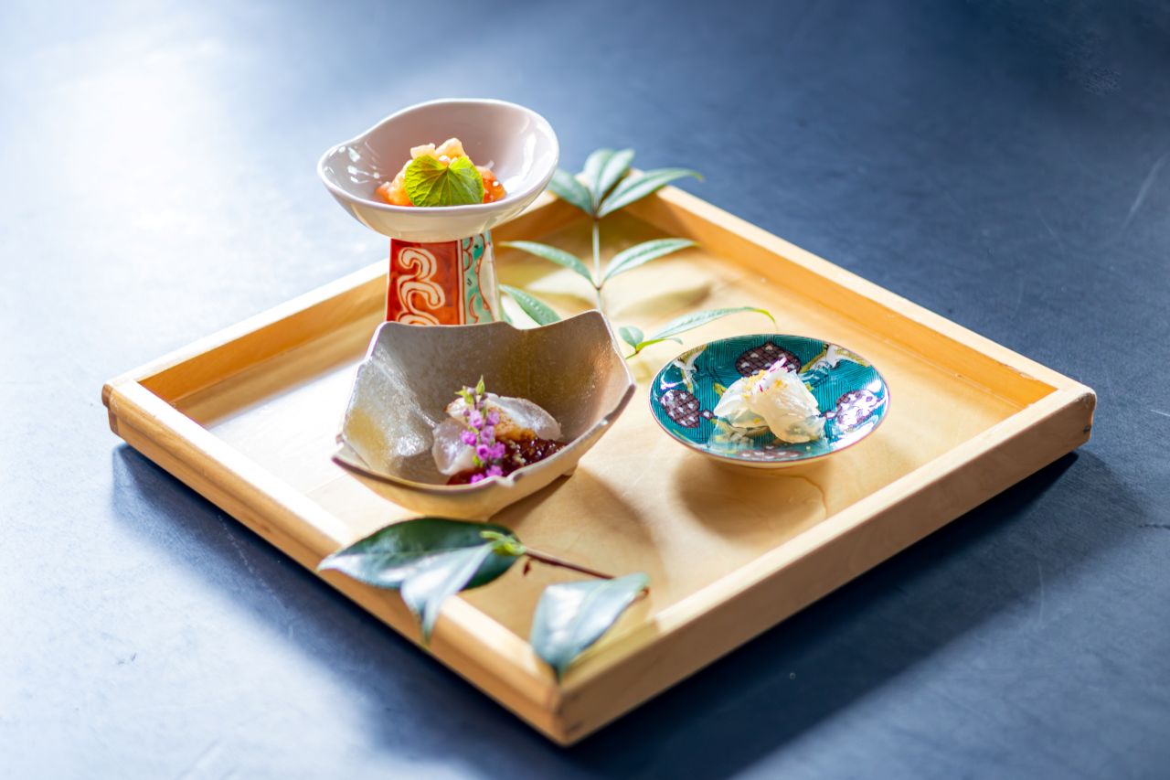 醍庵の料理コースは、前菜の品数が一つの特徴。小粋な料理を少しずつ味わってください。