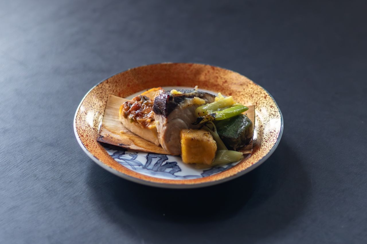 金沢名物の生麩と、キトキトの鰤を葱味噌で香ばしく焼き上げた一品です。