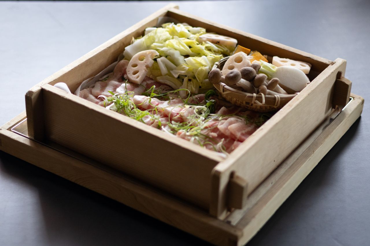 うまみが詰まった能登豚とたっぷりの冬野菜を蒸籠蒸しで。醍庵自慢の名物料理です。