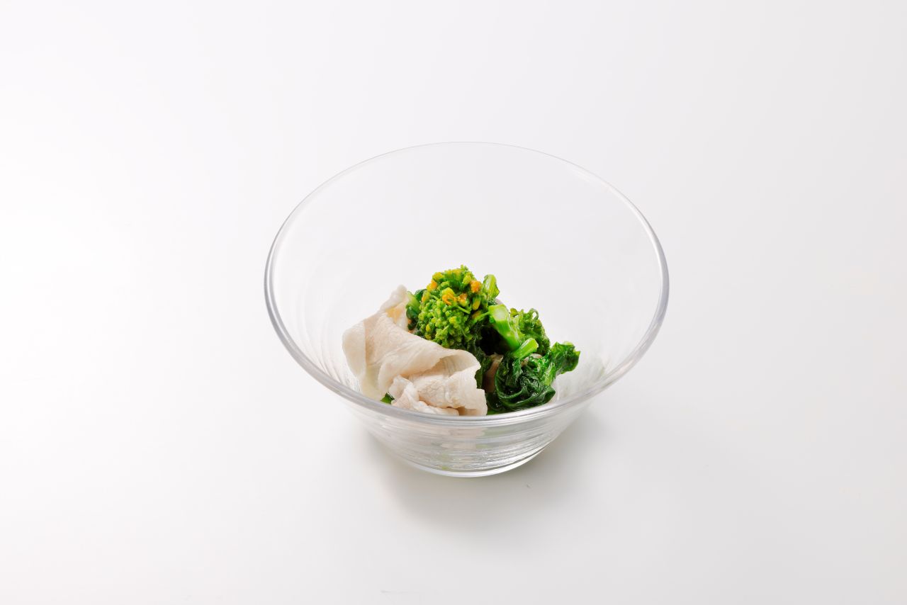 コクのあるフライド菜の花に、あっさりとした豚しゃぶをあわせて。